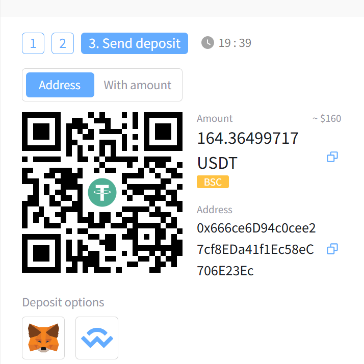 - Make sure to choose the correct network (e.g. BSC, TRC20, etc.).