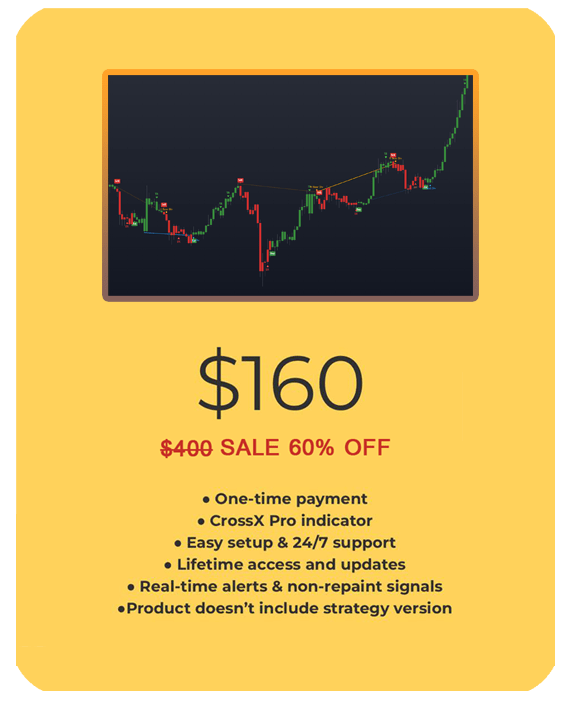 Attention: CrossX Pro indicator will be located within your TradingView account, it is a permission based plug-in feature. Within 1 hour of completing your purchase, you will receive it. Disclaimer here.