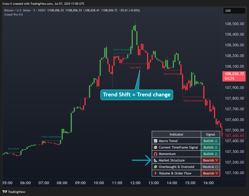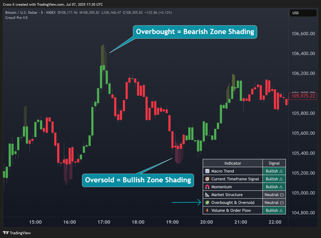 This dashboard is part of the CrossX Pro V.5 indicator, designed to help traders quickly assess the overall market outlook from multiple dimensions.